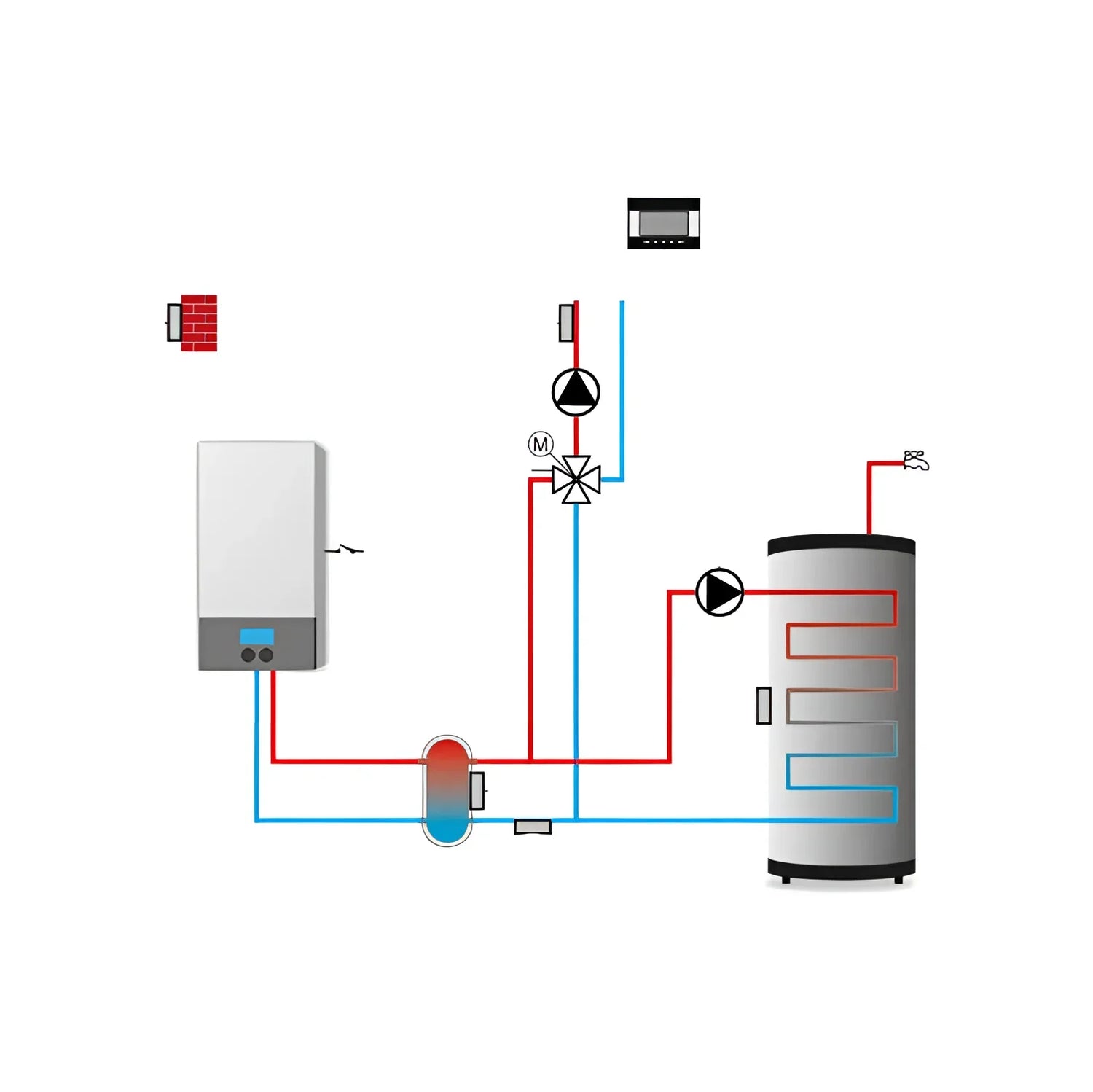 Ce régulateur de circuit de chauffage assure une régulation constante de la température de départ, en fonction des conditions météorologiques, grâce à la sonde de température extérieure incluse. Il commande également le moteur du mélangeur pour assurer une augmentation du débit de retour en cas d'utilisation d'un mélangeur quatre voies. Le chauffage est ainsi plus efficace et vous bénéficiez d'une utilisation optimale de l'énergie.