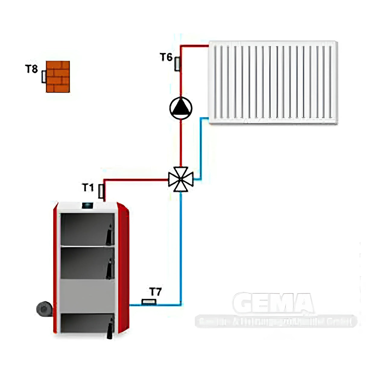 La deuxième fonction du système de régulation de chauffage est la régulation d'un mélangeur de circuit de chauffage en fonction des conditions météorologiques, par thermostat d'ambiance ou par valeur fixe. Bien entendu, le régulateur pilote également une pompe de circulation et s'adapte à l'actionneur correspondant.