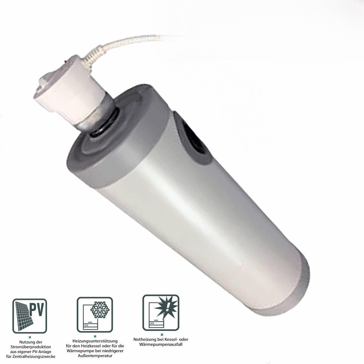 Jednoduchá integrace topné patrony do stávajících akumulačních nádrží je umožněna díky 1 1/2" Podporováno je připojení vnějším závitem a kompaktní instalační délka 520 mm. 1,5metrový připojovací kabel také umožňuje nekomplikované napájení.