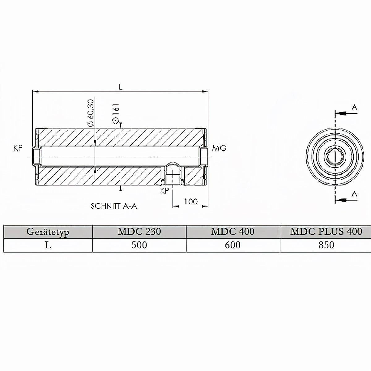 • Rozměry MDC400 (průměr x délka): 161 mm x 600 mm