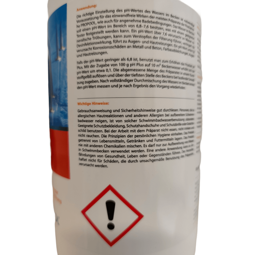 Følg altid brugsanvisningen, og bland aldrig pH plus-granulat med andre kemikalier. Dette produkt er udelukkende beregnet til vandbehandling i svømmebassiner, og producenten påtager sig intet ansvar for skader forårsaget af forkert brug.