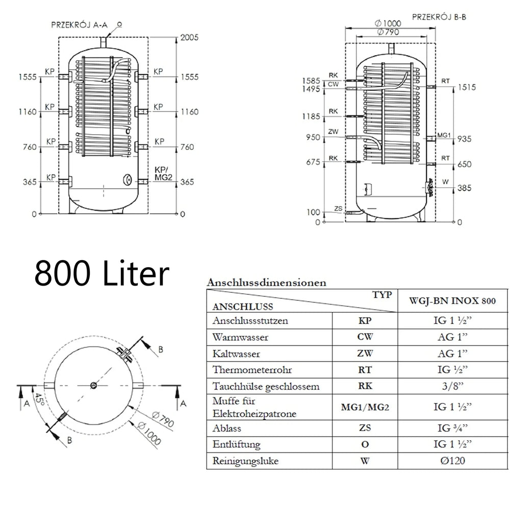 • Hygienespeicher 800  oder 1.000 Liter