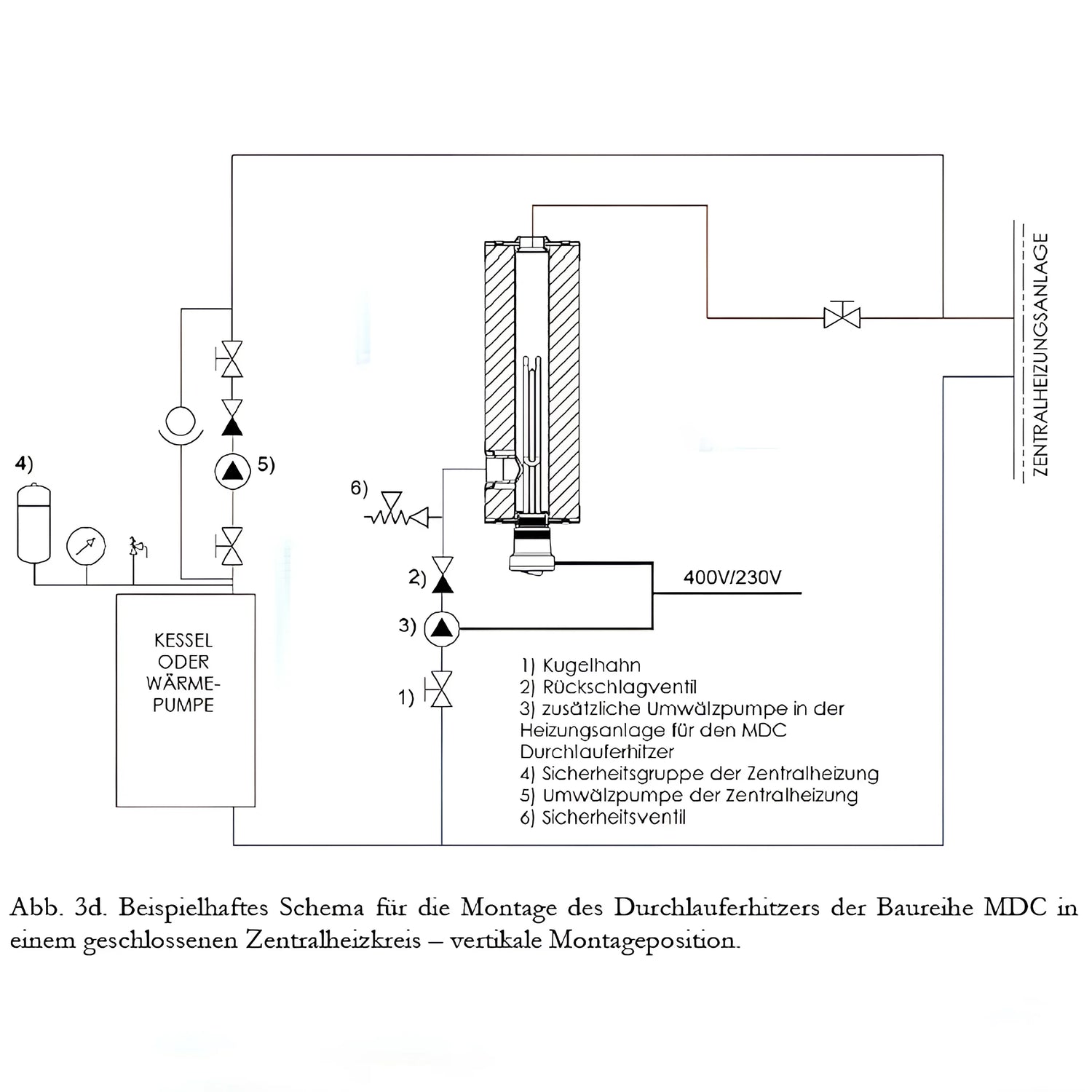 The complete package combines the versatile MDC 230 reheating module with a powerful 1.5 kW heating cartridge. It is ideal as a flexible addition to existing heating systems and reliably provides additional heat when needed.