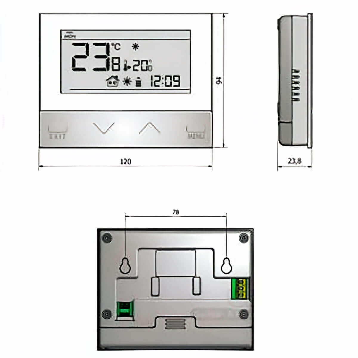 The thermostat impresses with its high-quality appearance: The front panel is made of 3 mm thick glass, which not only looks modern but is also particularly robust. The 3.6-inch backlit LCD display ensures easy readability, even in low-light conditions. The touch buttons complement the elegant design while offering intuitive operation.