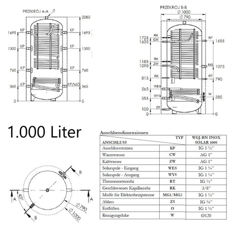 Memoria de agua caliente Sunex Fish S15 con 1 WT como Vaillant 8000021079