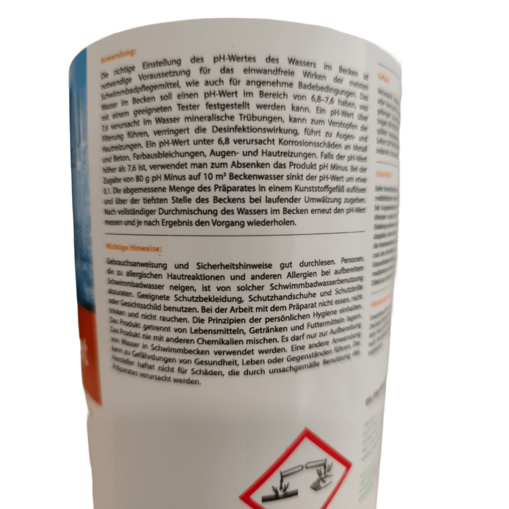 Ha a pH-érték 7,6 felett van, akkor pH Minus 1,5 kg-ot használnak annak célzott csökkentésére, és így az úszóvíz optimális tartományba hozására.