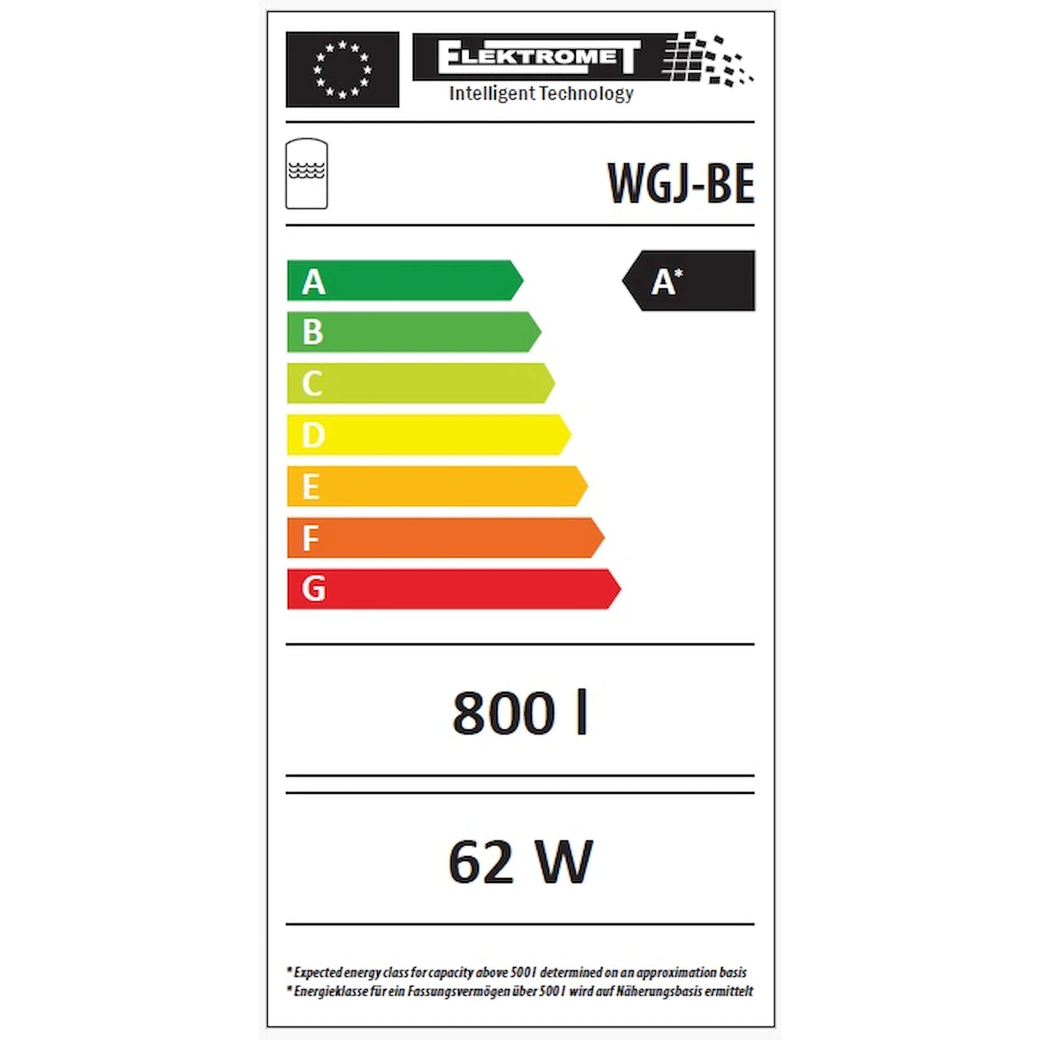 WGJ-BE 800: Uzglabāšanas tilpums aptuveni 710 l, miera stāvokļa zudumi aptuveni 62 W, ​​​​svars ~143 kg. WGJ-BE 1000: Uzglabāšanas tilpums aptuveni 830 l, miera stāvokļa zudumi aptuveni 71 W, svars ~160 kg. Maksimālais darba spiediens: 0,3 MPa; Maksimālā darba temperatūra: 80 °C.