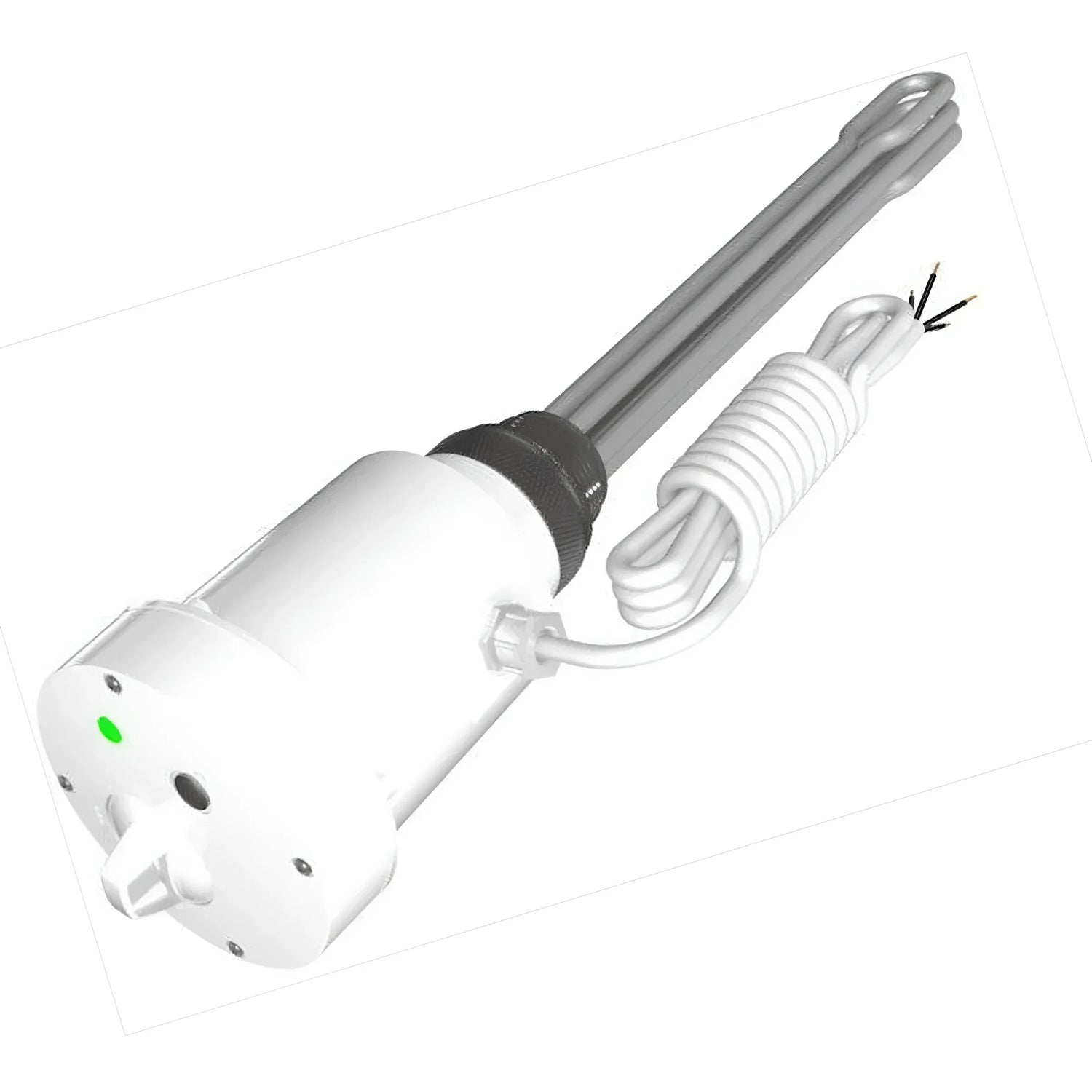Dołączona grzałka elektryczna, wykonana z wysokiej jakości stali nierdzewnej, oferuje moc grzewczą 3 kW i regulowany zakres temperatury od 5°C do 75°C. Zintegrowany termostat z histerezą włączania i ogranicznik temperatury bezpieczeństwa 93°C zapewniają niezawodną pracę. Stopień ochrony IPX4 pozwala na użytkowanie nawet w wilgotnych warunkach.