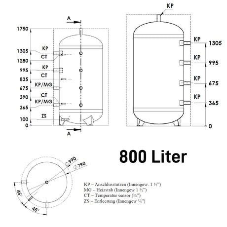 Uppvärmning av vattenbuffertminnet 500 liter